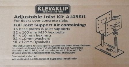 There are now three options available when purchasing the Adjustable Joist Support- either the Adjustable Joist Kit which includes Bolts, Nuts, Washers and dynabolts or the Adjustable Joist Support AJH45G or AJH50G where they are not included.