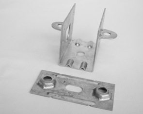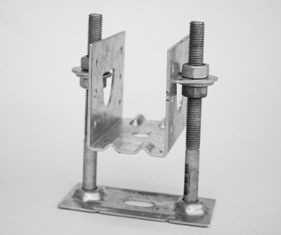 Each Adjustable Joist Support ( joist holder + base plate) requires 2 x 3/8 inch Hex Head Bolts, 4 x 3/8 inch Nuts & 2 X 3/8 inch washers and 1 x 2 inch x 1/2 inch Galvanised screw anchor or similar.