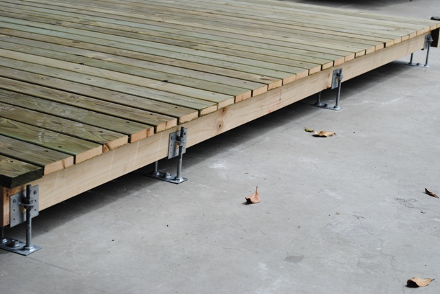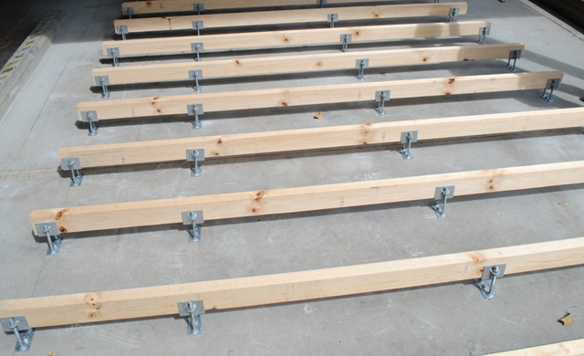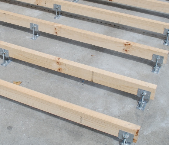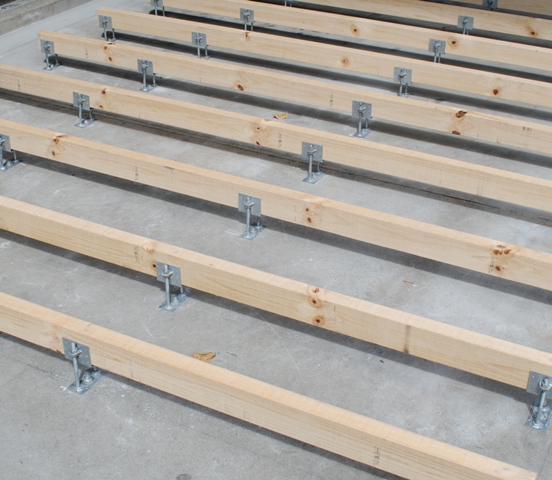 The Adjustable Joist Support has been designed specifically to enable decks to easily be built over concrete slabs in areas where limited ground clearance is available. It is ideal for use when the step-down from your door to your concrete slab is between 4 inches (minimum) and around 10 inches (maximum)The AJH38G has been specifically designed to be used with 2 inch wide (metrically measured at 38 mm) pressure treated timber joists for USA markets.