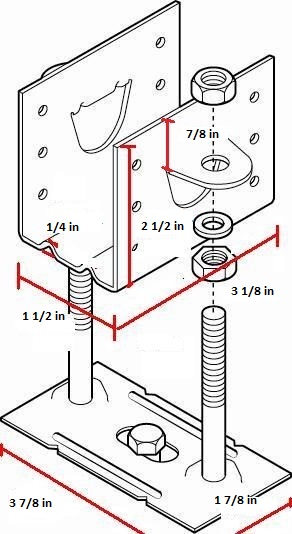 Each Adjustable Joist Support ( joist holder + base plate) requires 2 x 3/8 inch Hex Head Bolts, 4 x 3/8 inch Nuts & 2 X 3/8 inch washers, 1 x 1/2 x 2 inch long Galvanised screw anchor or similar.