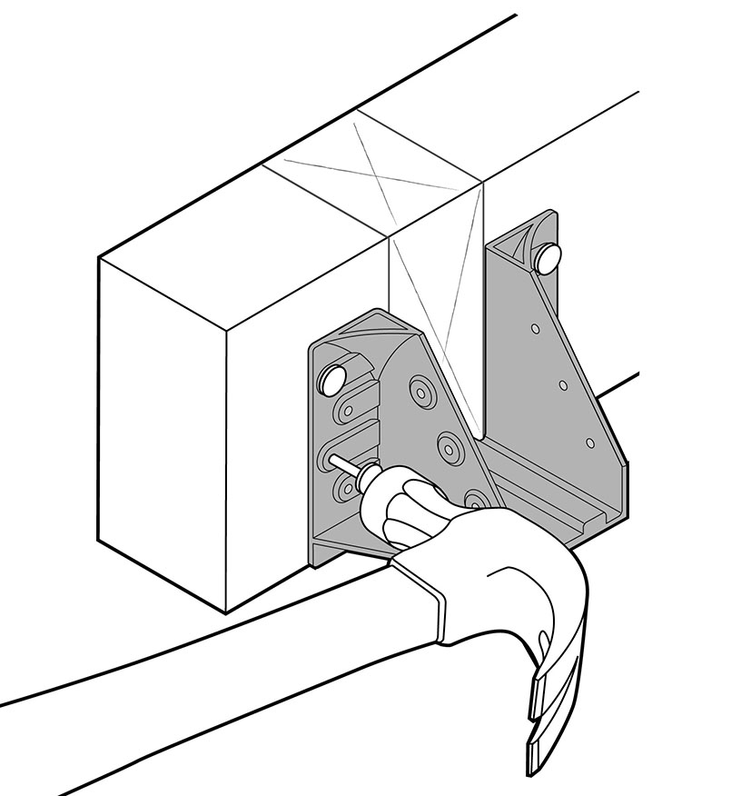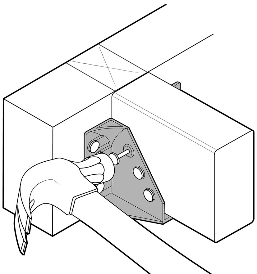 Once both top left and right hand connector nails are in place remove the “”Jig”” and insert the remaining nails to attach the hanger to the bearer –