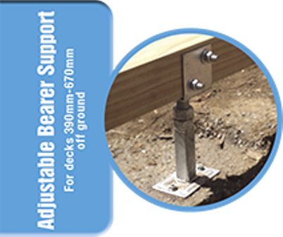 | Adjustable Bearer Support - for decks 390mm to 67mm off the ground. |